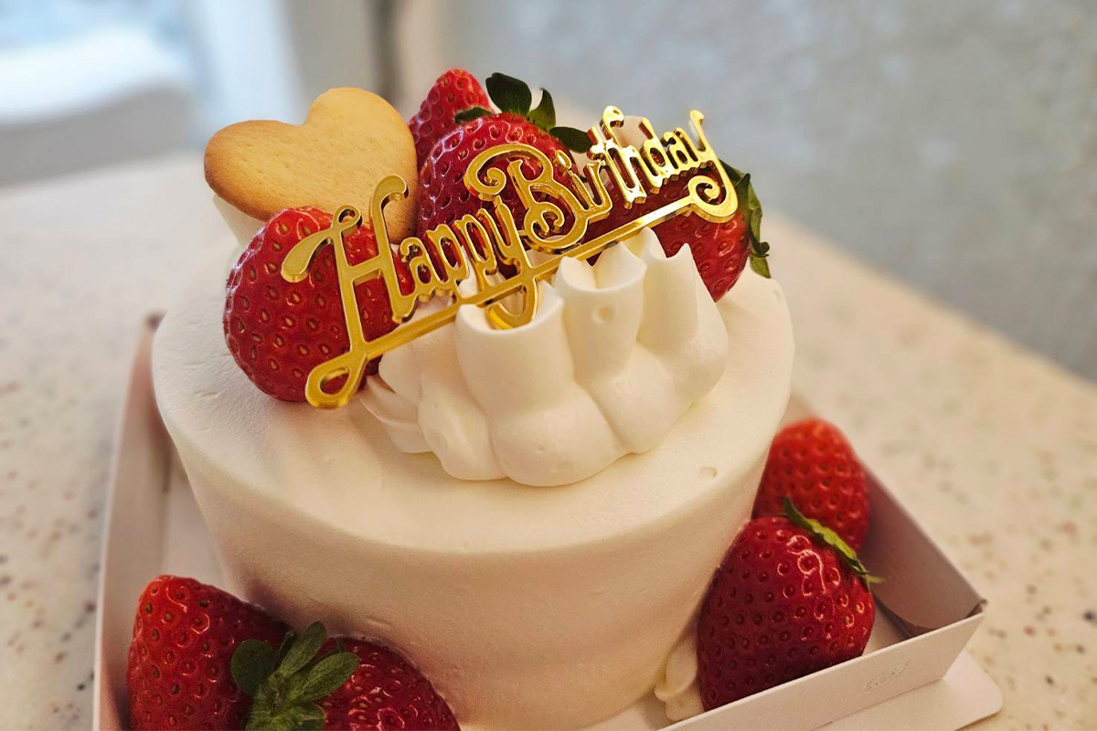「Happy Birthday」と書かれたゴールドのプレート。(こちらはメッセージ等お書きすることはできません)